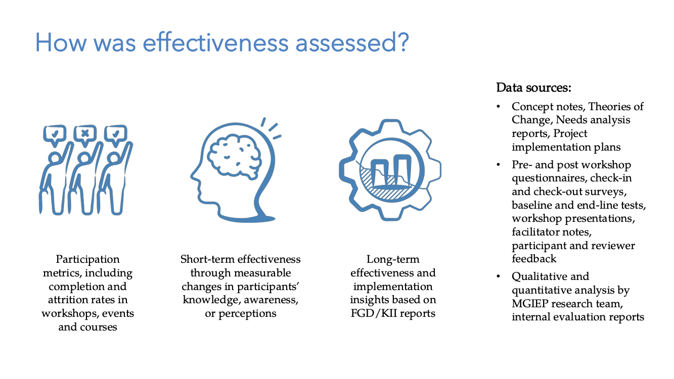 The work combined programme costing with outcome evidence from MGIEP’s internal evaluations to understand not just whether the initiatives worked, but how efficiently they did so in very different contexts.